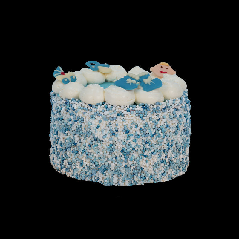 Hoera, een jongen! Vier dit mooie moment met ons blauwe geboortetaartje. Afgewerkt met muisjes, blauwe chocolade en lieve babyversiering - perfect om de geboorte of babyshower