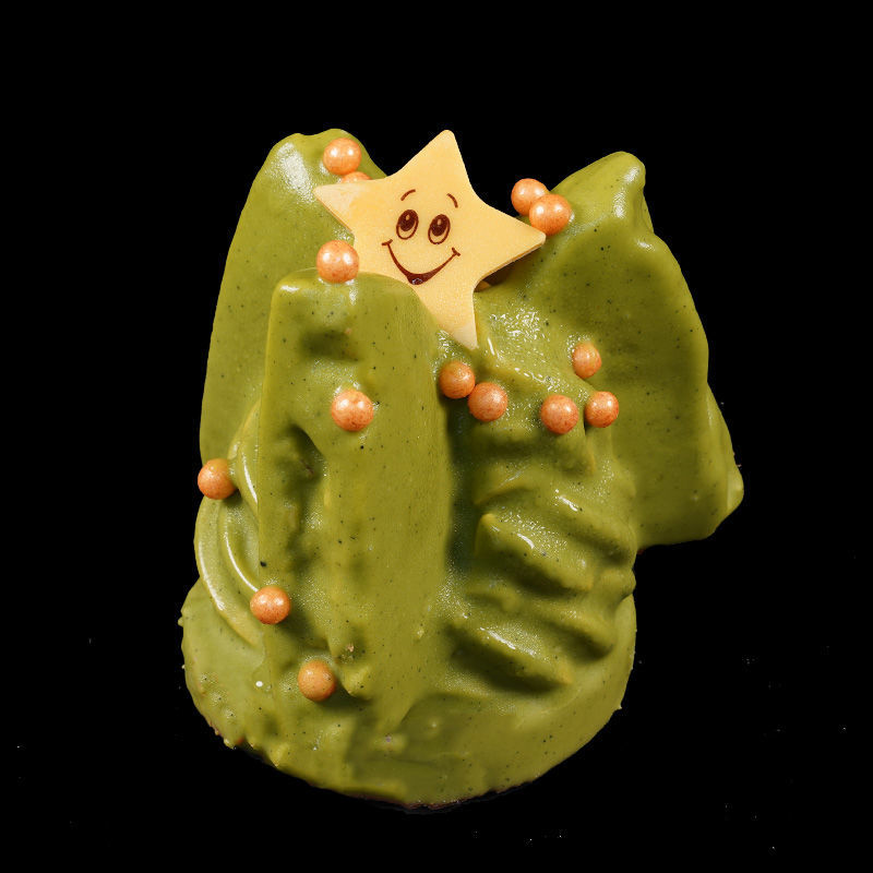 Onze klassieke Brabander met romige hazelnootcrème, overgoten met groene chocolade en feestelijk afgewerkt als kerstboom.