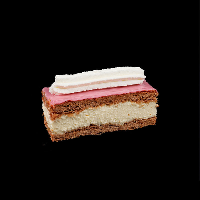 Luchtig bladerdeeg gevuld met romige banketbakkersroom en afgewerkt met glazuur.